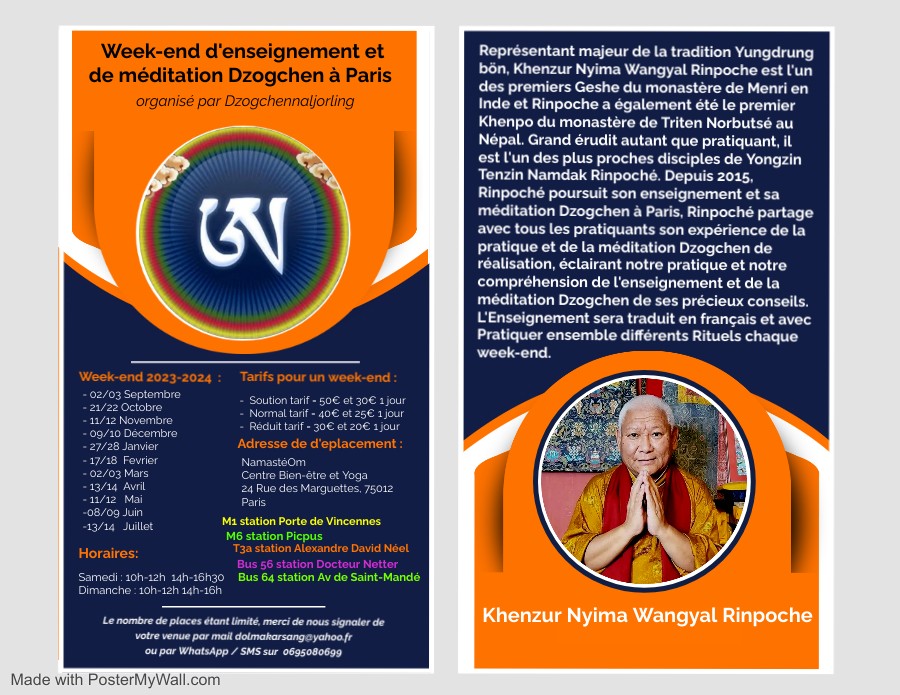 Les dates Weekends Enseignements à Paris par Rinpochè 🙏
